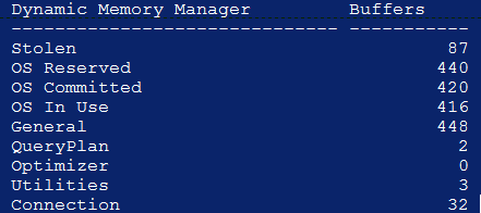 Apart from the output for the Memory Managers, another important section in the output is the first section of the output, which can be used to see how are the Database Pages allocated in the BPool.