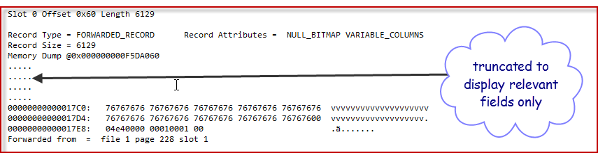 as can be seen that the Forwarded record has information about the forwarding record. As Paul Randal mentions in this blog, the back pointer is 10 bytes in size.